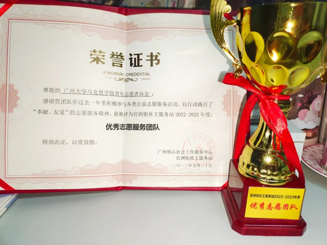 青协先后获得“官洲街社工服务站2022-2023年度优秀志愿服务团队”,“广州大学青年志愿者协会69成人网