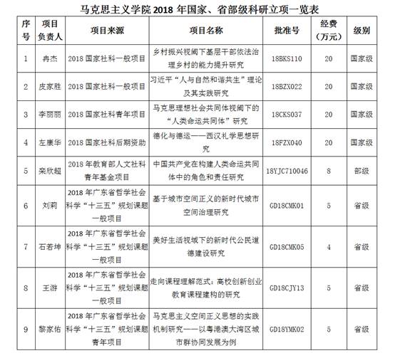 在即将过去2018年各类科研项目申报工作中,学院充分发动,精心组织,及时通知,认真落实,顺利完成了2018年科研申报任务指标。据统计,至2018年11月底,学院教师申报的省部级以上科研项目立项9项,经费逾百万,分别是国家社科基金项目4项,教育部人文社科基金1项,2018年省哲学社会科学“十三五”规划课题4项,其中省哲学社会科学“十三五”规划课题占全校当年同类立项的23%以上,是立项最多的学院。