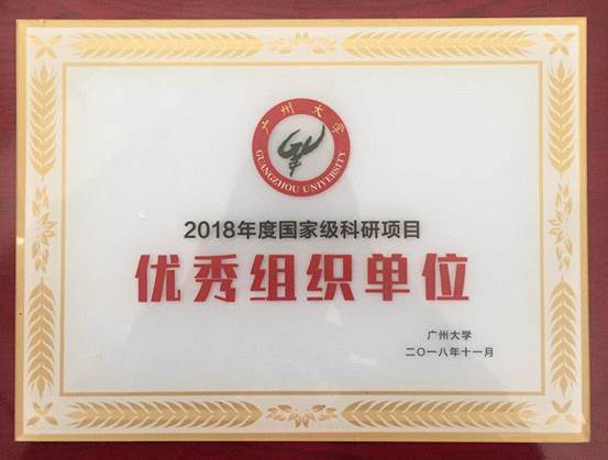 2018年度国家级科研项目优秀组织单位奖光荣匾